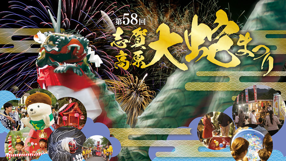 志賀高原の大沼池に棲むといわれる大蛇と黒姫の物語「大蛇伝説」をモチーフとした、志賀高原最大の夏の祭典「志賀高原大蛇祭り」を開催いたします。 初日は大沼池にて神事「大蛇入魂祭」が執り行われたあと、魂が込められた大蛇が大沼池を渡る「湖上渡り」が行われます。 2日目には花火の打ち上げのほか、フードコーナーの出店や、さまざまなイベントを予定しています。